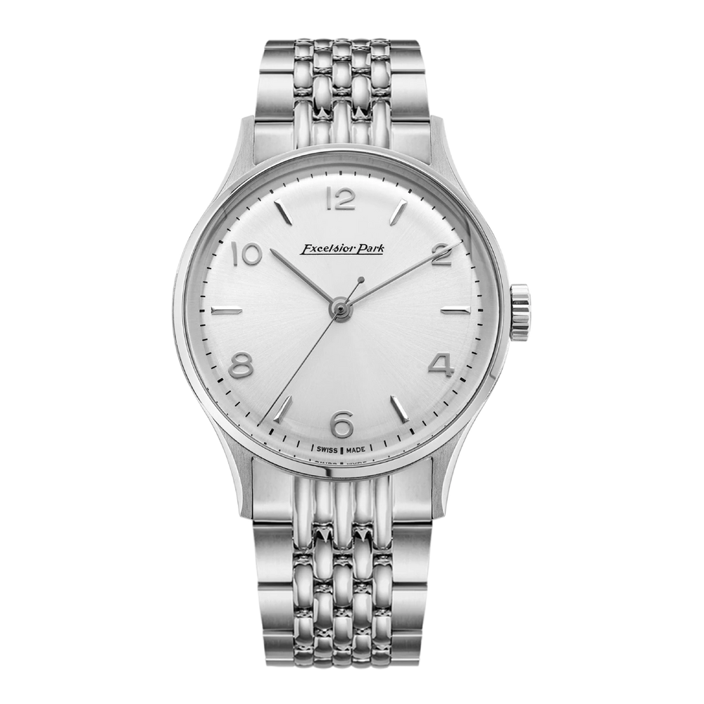 The reference 884-SI pays homage to the birthplace of  the brand, the village of St-Imier, founded in 884 A.D. and symbolized by the initiales "SI". Inspired by one of the rare three-hands models produced by Excelsior Park in the 1950s, we felt it essential to honor the brand's heritage. Therefore we chose a manual-winding movement, the L21 caliber from Landeron. This watch represents a subtle blend of vintage codes with a contemporary touch, capturing  the essence of classic watchmaking while meeting modern expectations.