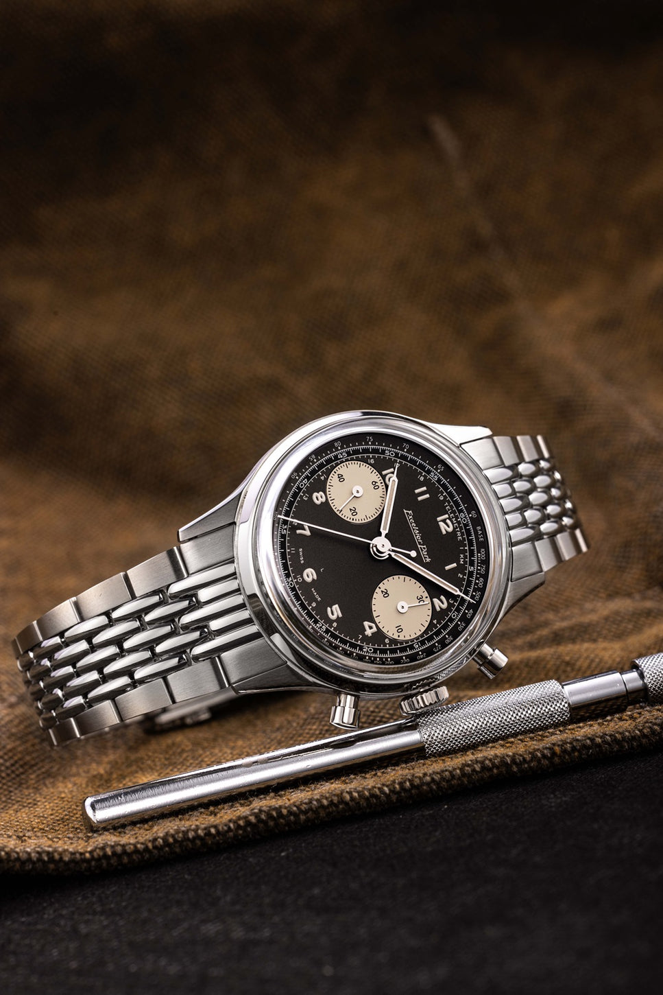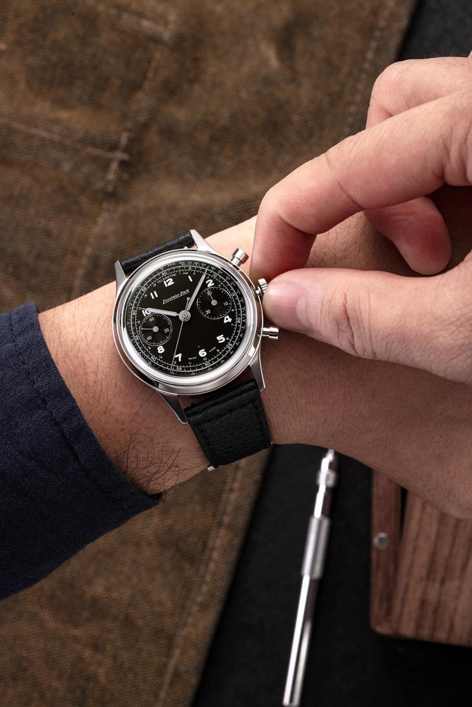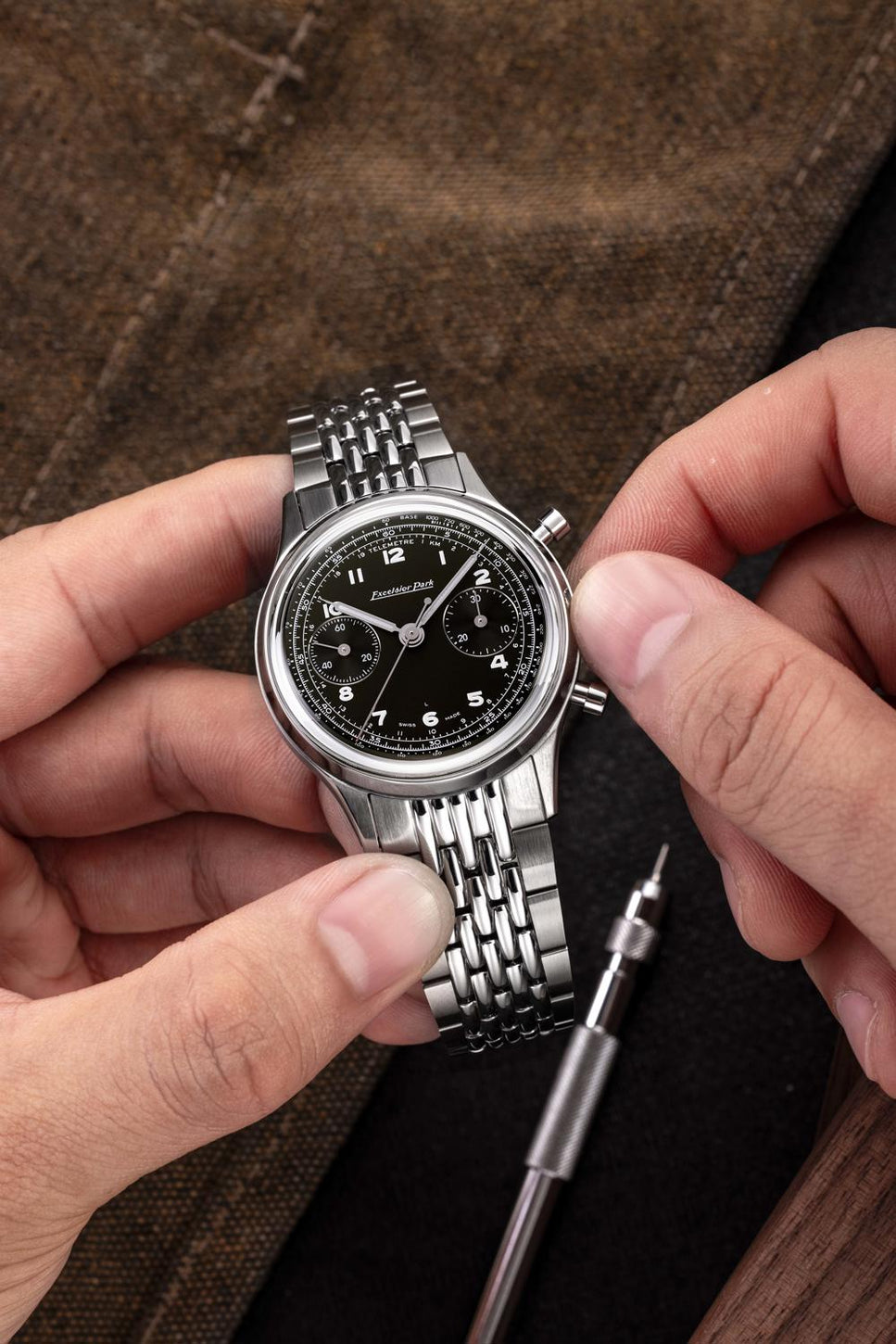 The new Bi Compax Dual collection is inspired by the chronographs of the 1950s, combining refined design and robustness. Equipped with the Landeron L70M manual movement with 48-hour power reserve, this watch offers optimal legibility thanks to Super-LumiNova numerals. Available with a 38.9 mm polished stainless steel case, and two bracelet options, this individually numbered timepiece is a true ode to traditional watchmaking.