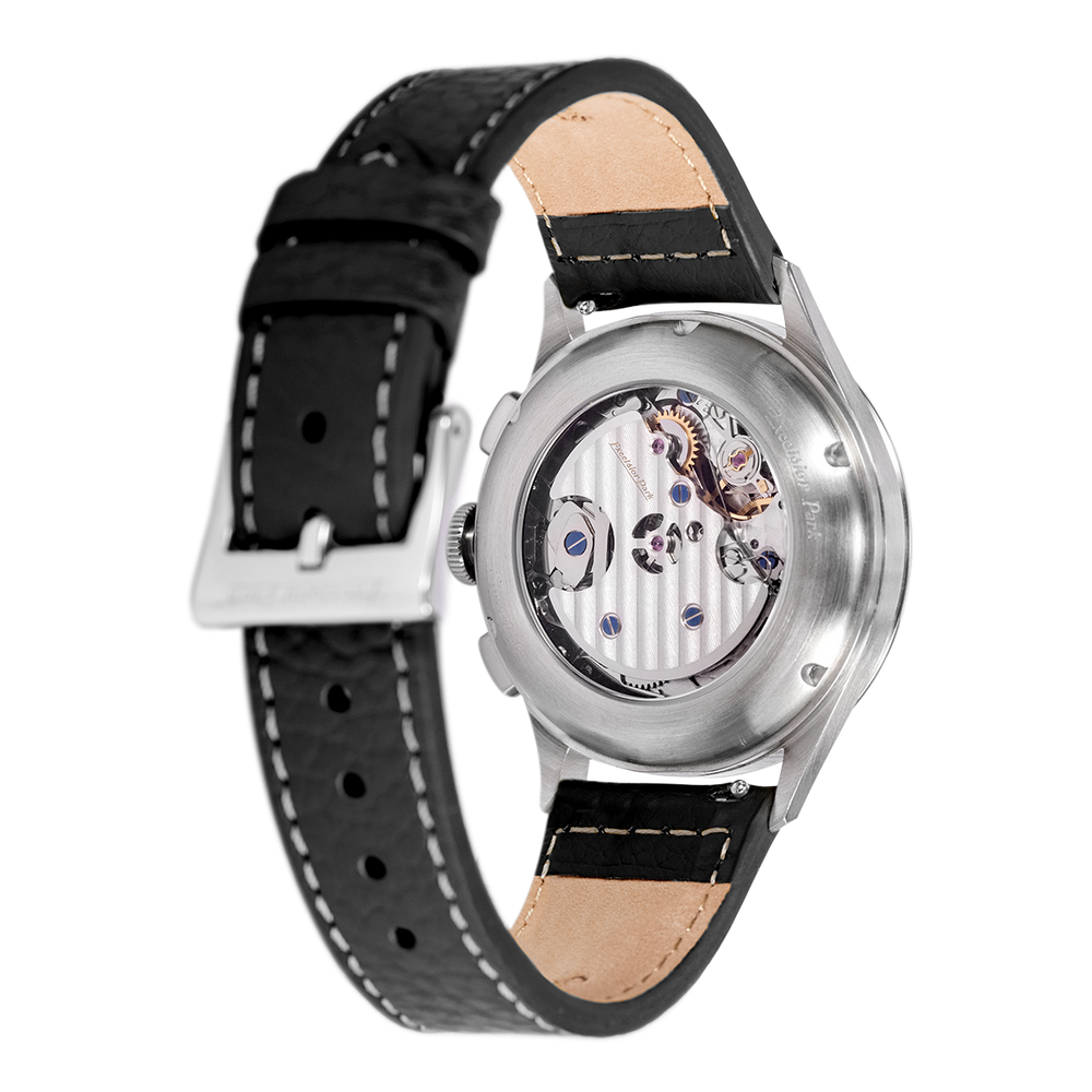 A classic of 1950s watchmaking, the EP95000 features a very legible white dial. It is covered with a double domed sapphire crystal with anti-reflective treatment. This manual winding chronograph  with two sub counters is equipped with a red telemeter and a blue tachymeter scale. Powered by the Swiss Sellita SW510 BH B movement, it is the epitome of quality and timelessness.