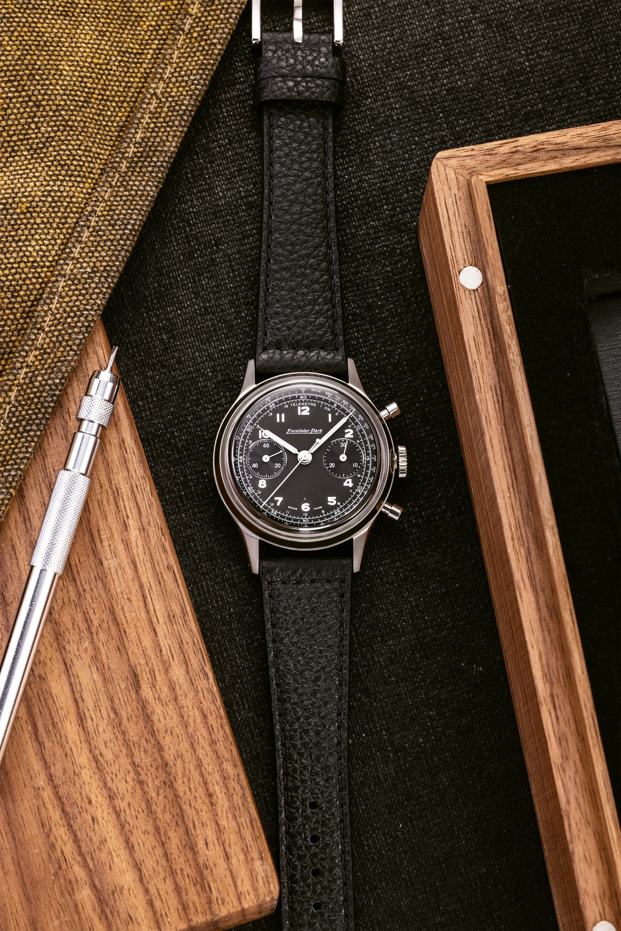 Classique de l’horlogerie des années 1950, l'EP95000 dispose d’un cadran blanc très lisible. Il est recouvert d'un verre saphir double bombé avec traitement antireflet. Ce chronographe à remontage manuel bi-compteur est équipé d’un télémètre rouge et d’une échelle tachymétrique bleu. Propulsé par le mouvement suisse Sellita SW510 BH B, c'est la quintessence de la qualité et de l'intemporalité.